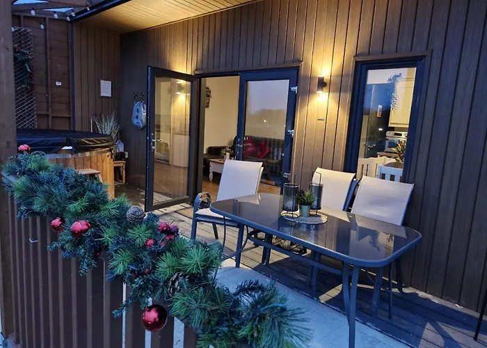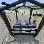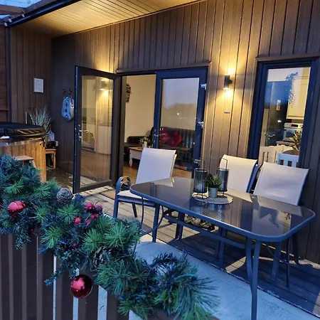 С террасы открывается вид на озеро. В ванной комнате также есть душевая кабина, отдельный туалет и умывальник. Кроме того, гости могут воспользоваться феном, халатами и банными полотенцами.